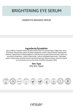Ornate Under Eye Serum provides the essential care your eye contour needs. 💧 While blueberry delivers antioxidant support, caffeine helps reduce the appearance of dark circles and puffiness. EGCG (green tea) offers a soothing effect, and 4D Hyaluronic Acid provides intense hydration for a plumper look. With regular use, the eye area appears brighter, fresher, and more revitalized.