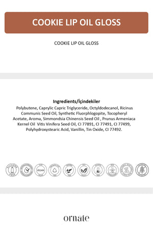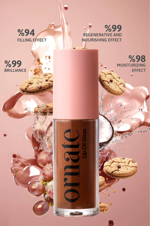Ornate Cookie Lip Oil Gloss delivers both care and a natural shine to your lips. 💋 Its light brownish tint adds a warm touch to your everyday makeup. The oil-based formula hydrates and softens the lips while helping to prevent dryness throughout the day.