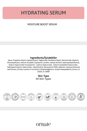 Ornate Hydrating Serum delivers the power of superfoods to your skin. 🍉🌿 While watermelon and spinach help nourish and refresh the skin, 4D Hyaluronic Acid provides deep, multi-level hydration. Niacinamide helps support the reduction of pore appearance and uneven skin tone, while peptides strengthen the skin barrier, promoting a firmer and smoother-looking complexion.