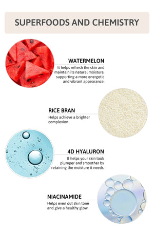 Brightening effect: Promotes a more luminous complexion with rice milk and watermelon